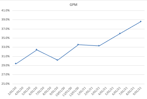 GMV ของ Merchant ใน Platform โต 86% ในไตรมาส 3 ปี 2021 รายได้โต 77% กำไรขั้นต้นโต 127% หุ้นทรงประมาณนี้คือกำลังเกิด Economie of Scale ทำให้กำไรโตมากกว่ารายได้ ถ้ายัง Keep การเติบโตแรงๆแบบนี้ได้ EV/Sales แพงๆจะลดลงมาเร็วมากๆ
