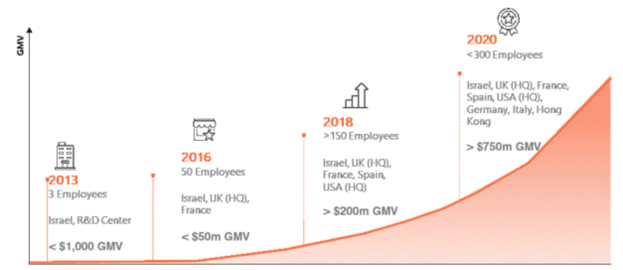 GLBE เป็นบริษัทสัญชาติอิสราเอล เพิ่งเข้า IPO ในตลาด NASDAQ เมื่อกลางปี 2021 ก่อตั้งในปี 2013 ใช้เวลาเพียง 8 ปีเข้าตลาดหุ้นสหรัฐฯได้ ปัจจุบันมีลูกค้ากว่า 520 ราย เป็นแบรนด์ที่เราคุ้นเคยกันดี